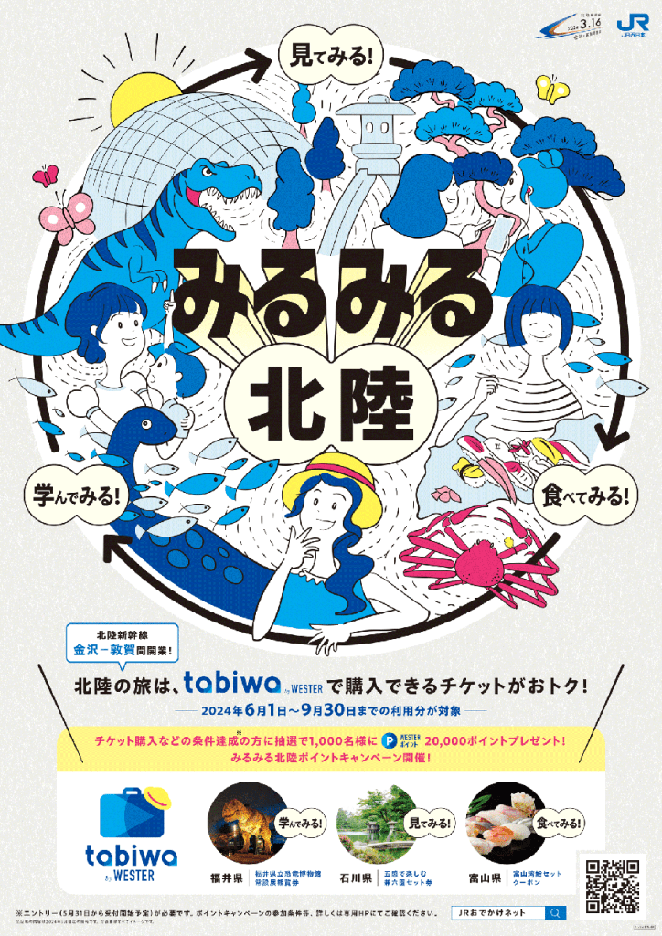 2024年3月16日に北陸新幹線金沢~敦賀間が開業し、盛り上がりを見せる北陸のあらゆる魅力を五感で感じてもらおう!として、「見てみる」「食べてみる」「学んでみる」といった「〇〇してみる」を合言葉に、地元素材など北陸の魅力を存分に楽しめる北陸観光キャンペーン「みるみる北陸」が開催されています。
